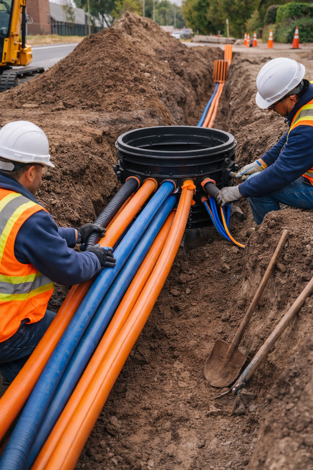 في إنما تل للمقاولات نتميّز بتنفيذ شبكات المسارات الأرضية (Ducts) للبنية التحتية لشبكات الاتصالات والألياف البصرية باستخدام منهجية هندسية دقيقة وتقنيات متطورة.